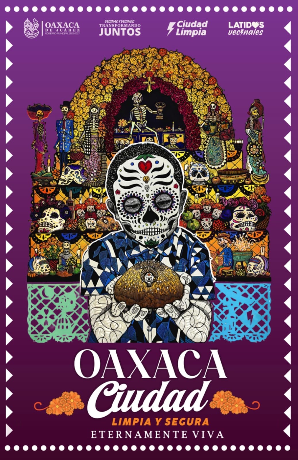 El Municipio de Juárez invita a conocer la cartelera cultural de Día de Muertos 2025, una de las festividades más emblemáticas de la capital, que rinde homenaje a la vida y la memoria a través del arte, la música y la tradición. Con el lema “Oaxaca Ciudad Limpia y Segura, Eternamente Viva”, el gobierno municipal encabezado por el presidente Ray Chagoya invita a vecinas, vecinos y visitantes a disfrutar de un programa que llenará de color, cultura y energía los espacios públicos.
