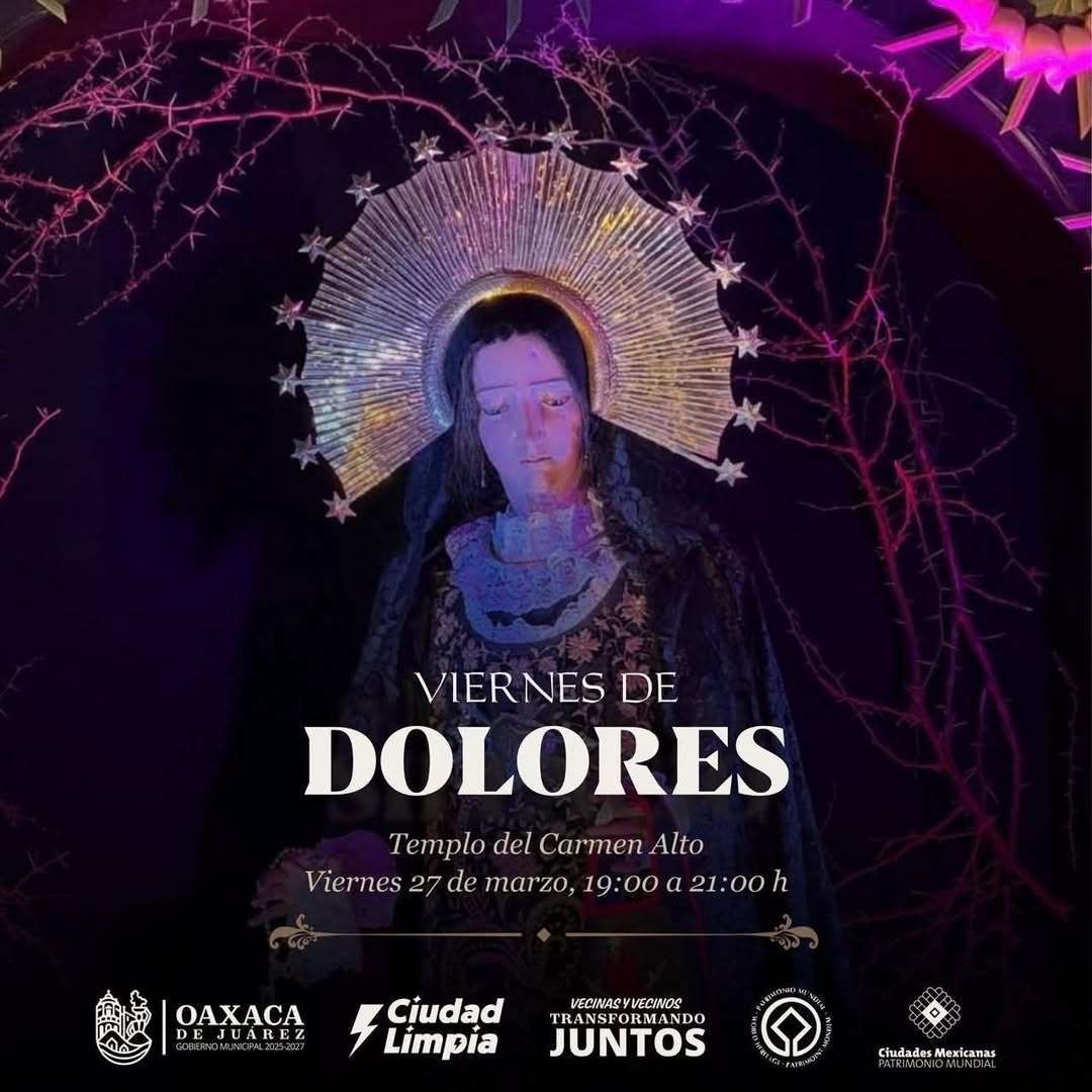 Las actividades inician con el Viernes de Dolores, este 27 de marzo en el Templo del Carmen Alto, una de las expresiones más representativas de la fe y la identidad de Oaxaca, que marca el comienzo de las celebraciones de Semana Santa en la ciudad.