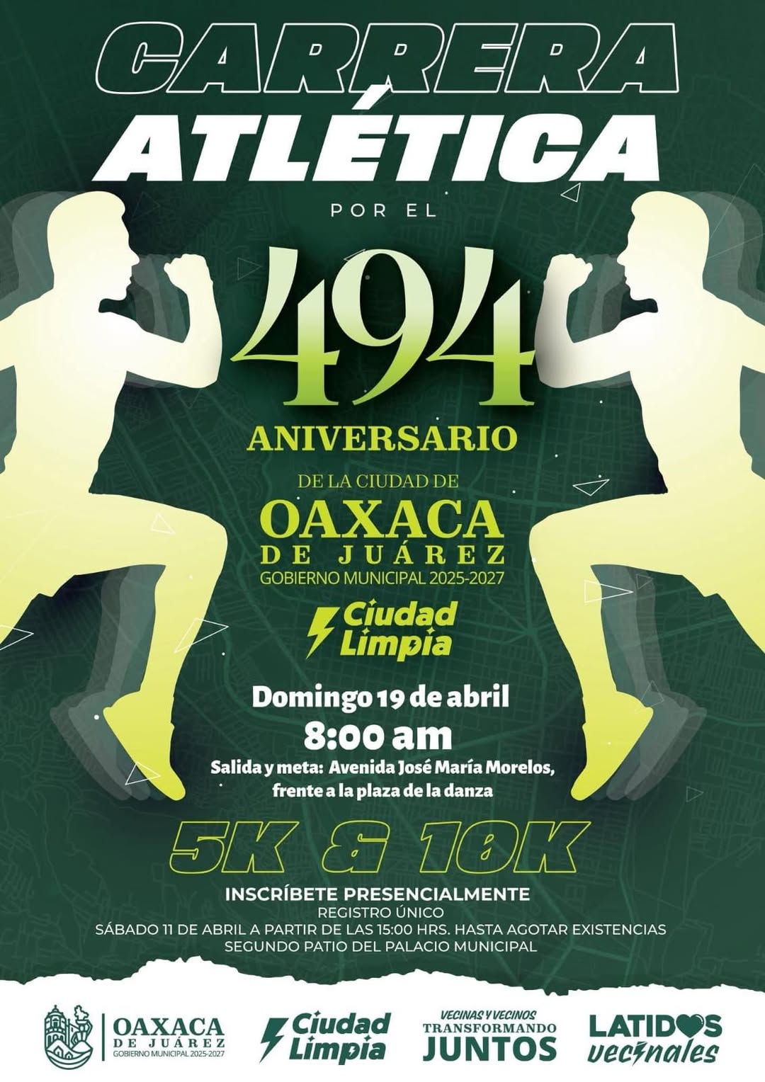El Gobierno Municipal de Oaxaca de Juárez por medio del Instituto Municipal del Deporte invitan a vecinas y vecinos a celebrar juntos el orgullo de nuestra ciudad participando en la gran carrera conmemorativa.