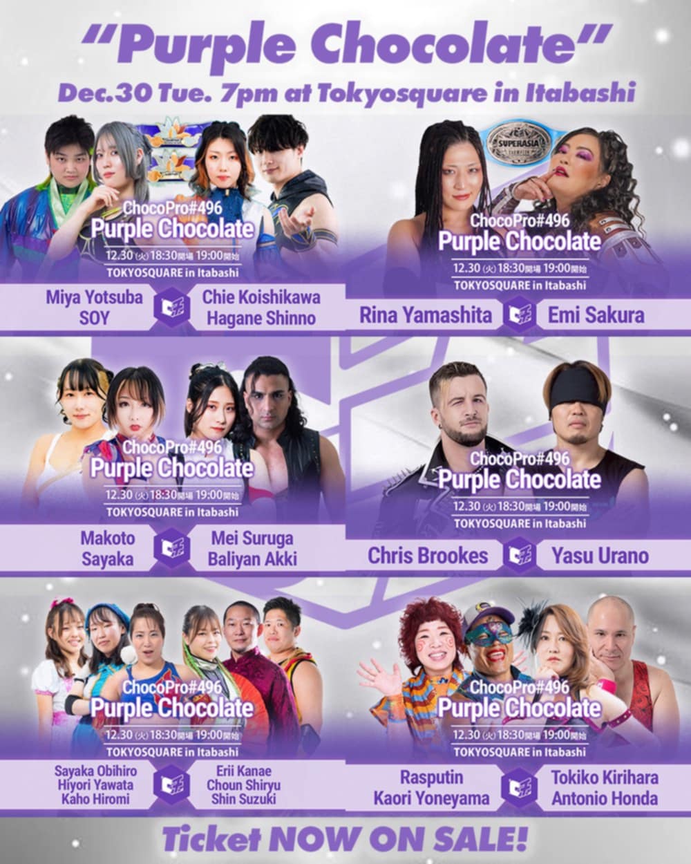 Durante su estancia en Japón, Rasputín realizó cinco presentaciones consecutivas en espacios de alto valor simbólico, deportivo y social. La gira incluyó una función formativa en la Escuela Primaria de Hisamoto; una presentación en el Korakuen Hall, considerado un recinto sagrado para los deportes de combate; dos funciones en el Heat Up Dojo en Kawasaki; y una aparición de alto impacto en el complejo Tokyo Square Itabashi, donde la lucha libre ha tenido una respuesta significativa por parte de la afición japonesa.