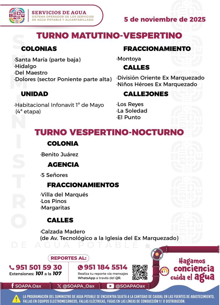 Agenda del suministro de agua potable para este miércoles ivet November 05 / 2025 Etiquetas Soapa Lee más sobre Agenda del suministro de agua potable para este miércoles