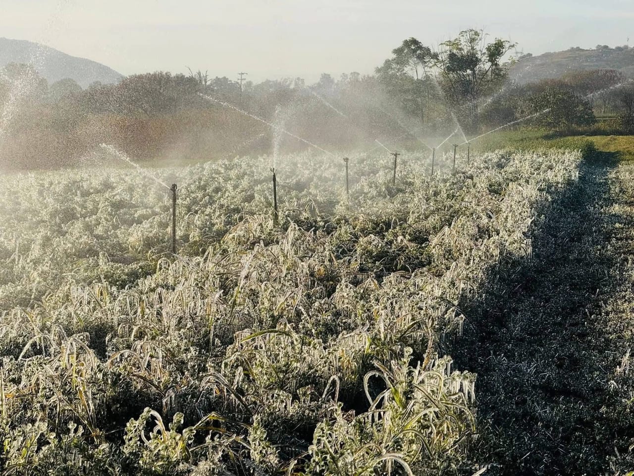 Desde las primeras horas de la mañana, se reporto la presencia de escarcha sobre hojas, ramas y terrenos, evidencia de temperaturas cercanas o inferiores a los cero grados centígrados.