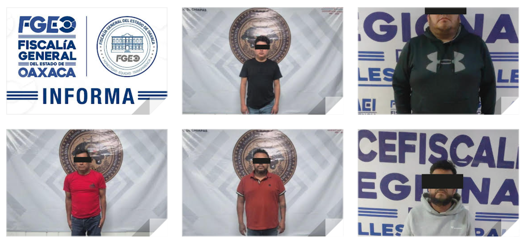 Derivado de estas acciones, B.I.C. y F.J.G. fueron detenidos en territorio oaxaqueño, mientras que, mediante la colaboración institucional con la Fiscalía General del Estado de Chiapas, se logró la captura de J.C.H.S., G.V.L. y A.G.G. en aquella entidad. Todos fueron puestos a disposición de la autoridad ministerial correspondiente, que determinará su situación jurídica conforme a derecho.