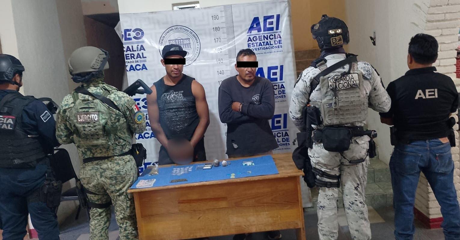 La Fiscalía General del Estado de Oaxaca (FGEO) ejecutó una orden de cateo en el municipio de Soledad Etla, acción que permitió la detención de dos hombres identificados como D.J.H. y V.I.D.H., así como el aseguramiento de diversas dosis de drogas.