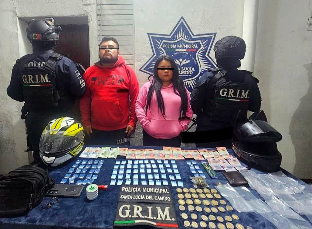 Elementos de la Policía Municipal de Santa Lucía del Camino lograron la detención de dos personas, Luis Alberto "N" y Daniela "N", señalados por presuntos delitos contra la salud.