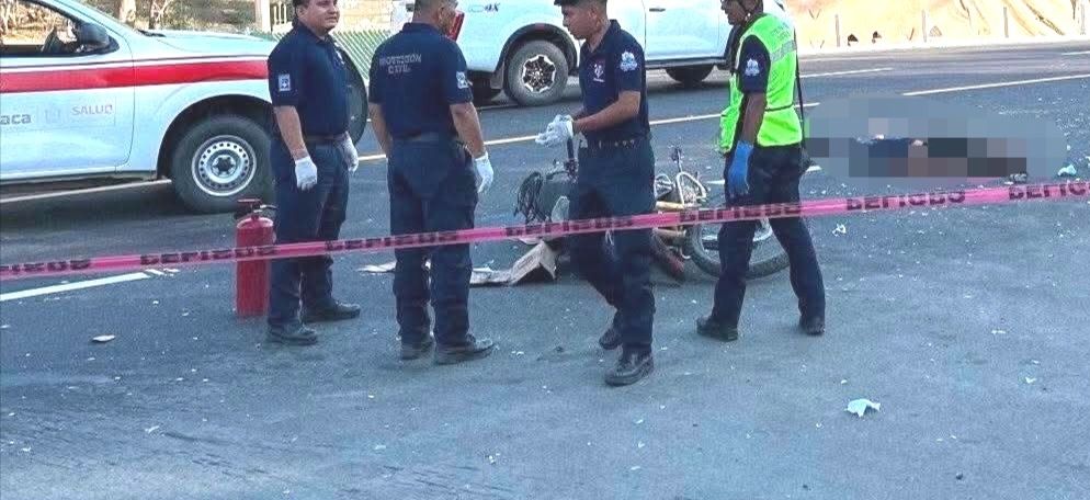 En un fuerte choque falleció el motociclista que choco de frente contra un vehículo, sobre la carretera federal 200 en el tramo de Pochutla a Huatulco, el cuerpo quedó tendido en el crucero de la colonia 20 de Noviembre.