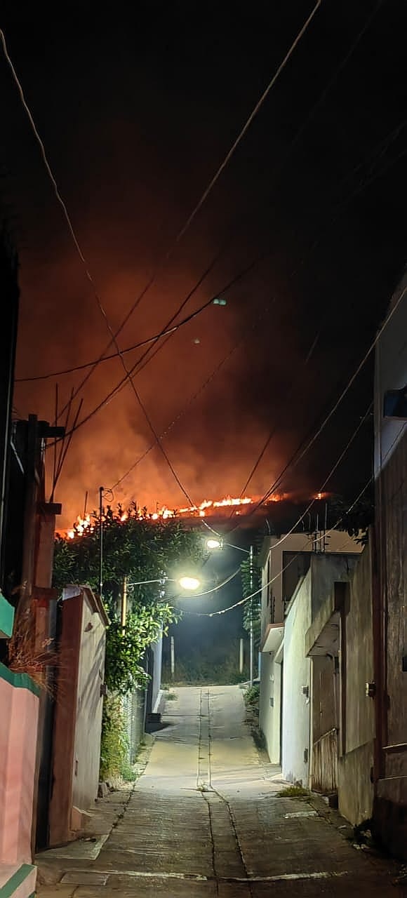 Las llamas estuvieron muy cerca de las viviendas, las cuales fueron controladas por integrantes del H. Cuerpo de Bomberos del Gobierno del Estado.