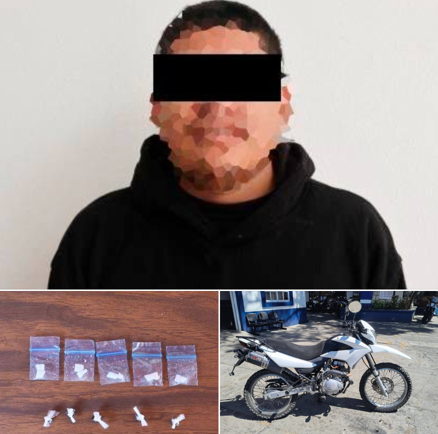 En el lugar, procedieron a la detención de C. E. J. R., la droga y la motocicleta marca Honda color blanco, tipo XR150, lo que quedó a disposición de la autoridad ministerial para determinar su situación jurídica.
