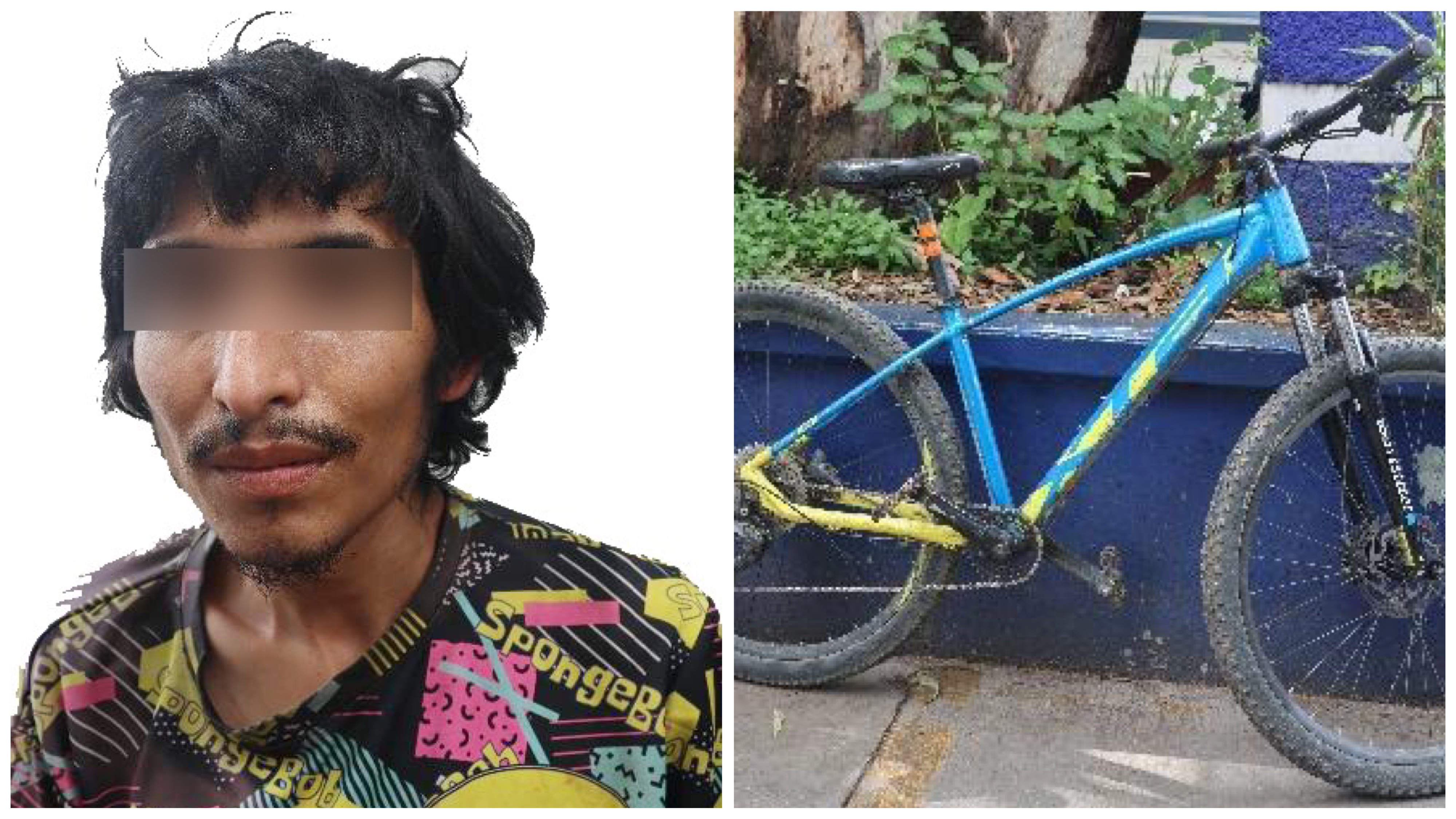 En el cruce con la calle Arista, el sujeto la arrojó al suelo y comenzó a correr, por lo que fue detenido unos metros adelante y dijo llamarse Carlos E. N. H., de 28 años de edad, así como recuperaron la bicicleta marca Alubike color azul.