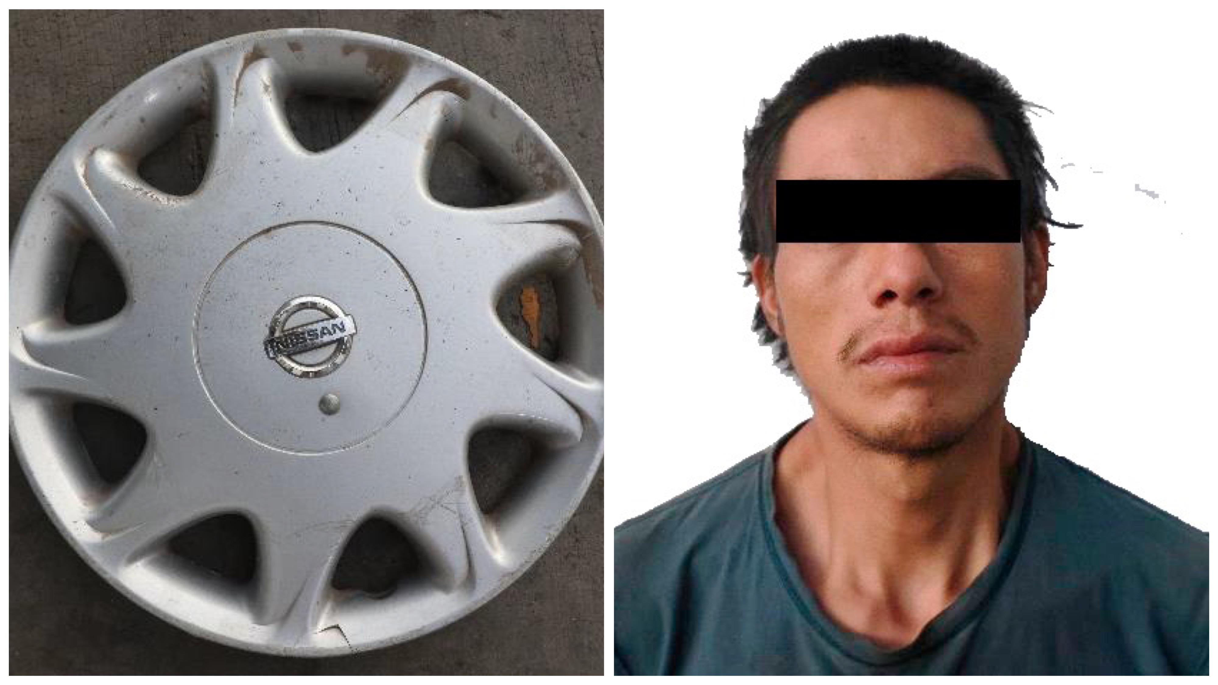 Un vecino, de 59 años de edad, señaló al sujeto retenido como el mismo que momentos antes desprendió el tapón de uno de los rines de su vehículo Nissan tipo Tsuru, el cual corrió para huir.