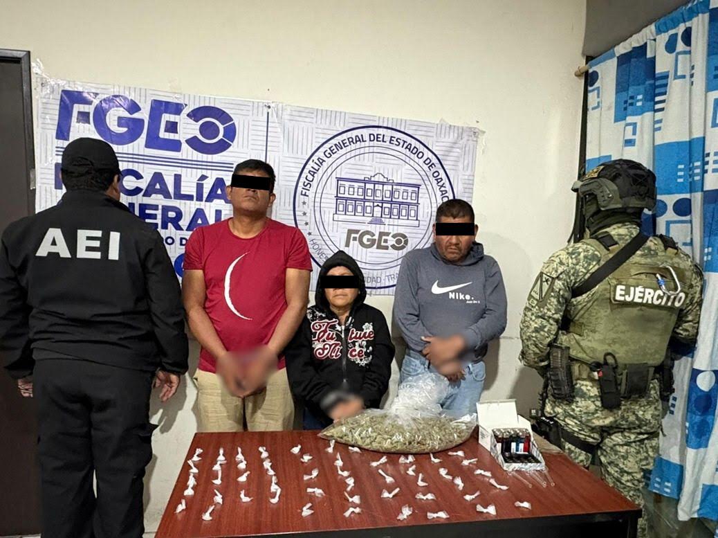 La Fiscalía General del Estado de Oaxaca (FGEO) obtuvo la vinculación a proceso de tres personas —dos hombres identificados como G.T.Z. y G.F.M., así como una mujer identificada como D.L.H.— por el delito contra la salud en su modalidad de narcomenudeo, quienes fueron detenidos durante la ejecución de un cateo en el distrito de Tlacolula.