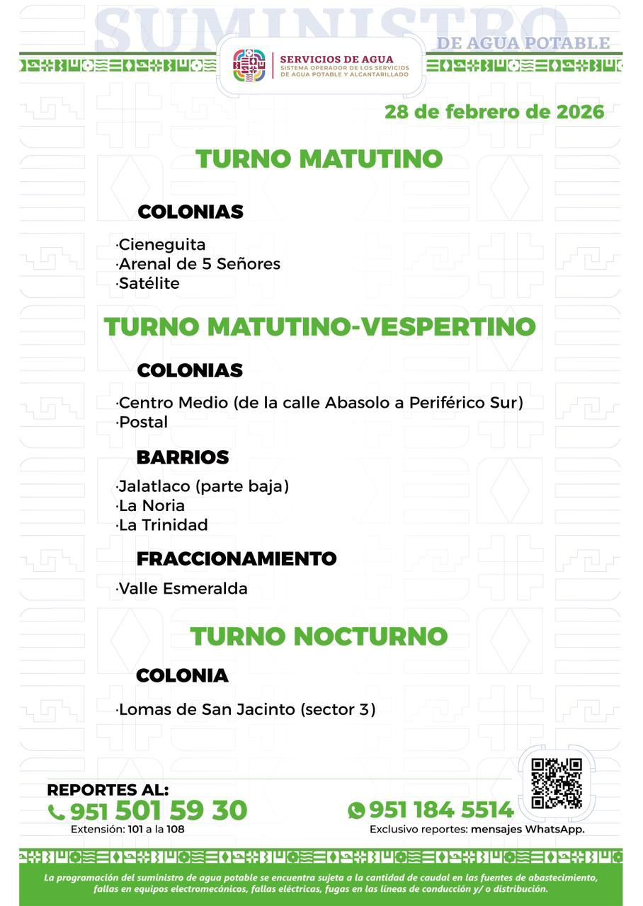 Agenda del suministro de agua potable para este sábado