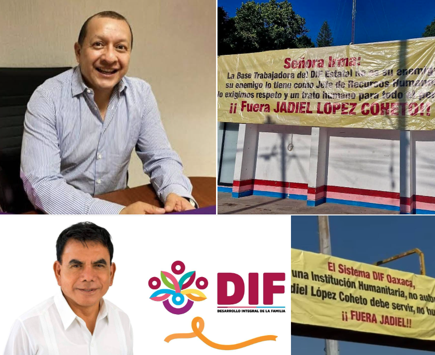 Los trabajadores de las oficinas centrales del Sistema DIF Oaxaca  se pronuncian en contra del Jefe de Recursos Humanos, Jadiel López Coheto. Este personaje es sobrino de Cándido Coheto, Priísta de hueso colorado ahora morenista, que en las oficinas anteriores siempre salió por problemas, ejemplos, en la Secretaria de Salud y en el IEEPO, ahora se dedica a crear problemas  en el DIF Oaxaca, empezando con las becas del DIF. Por culpa de este funcionario prepotente, los trabajadores mantienen tomadas  las instalaciones del DIF-OAXACA.