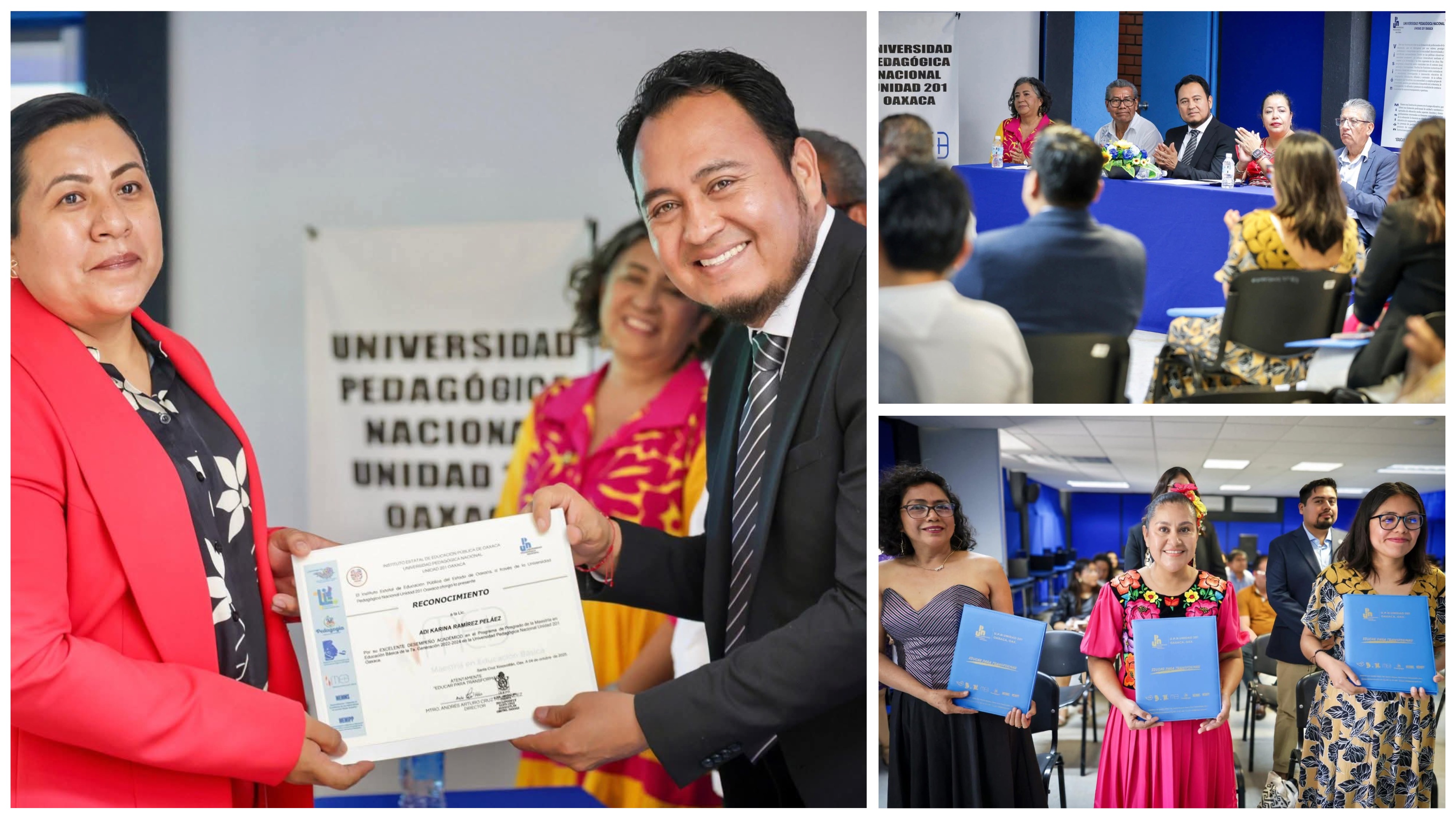 A nombre del Gobernador del Estado, Salomón Jara Cruz, les felicitó y reconoció su compromiso de seguir preparándose para transformar la educación y construir un Oaxaca más justo e incluyente.
