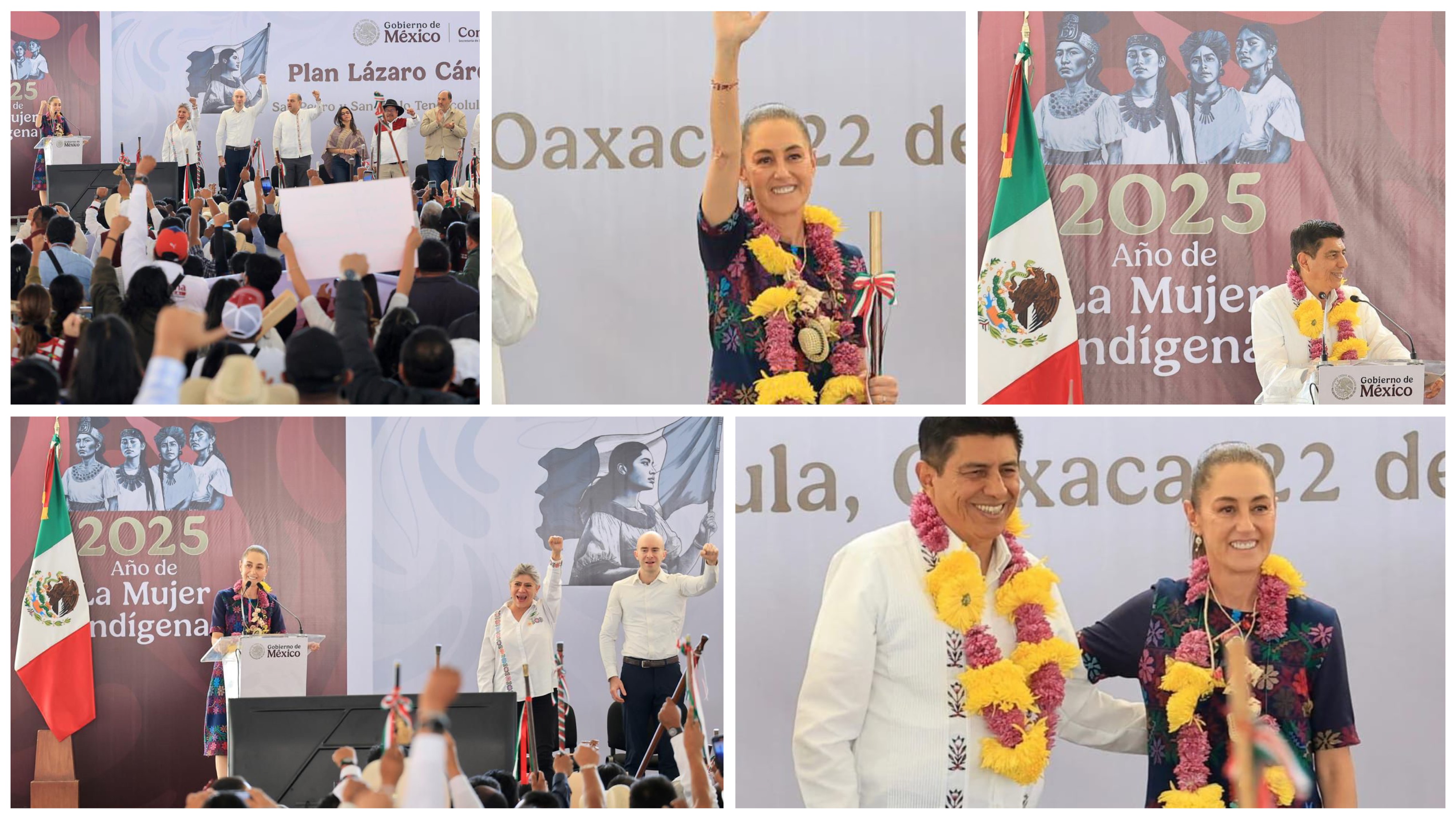 San Pedro y San Pablo Teposcolula, Oax. 22 de noviembre de 2025.- Frente a miles de habitantes de la región Mixteca, la Presidenta Claudia Sheinbaum Pardo y el Gobernador Salomón Jara Cruz presentaron los avances del Plan Lázaro Cárdenas; que lleva justicia social, con acciones integrales, a la zona donde se ubican las poblaciones más pobres del país.