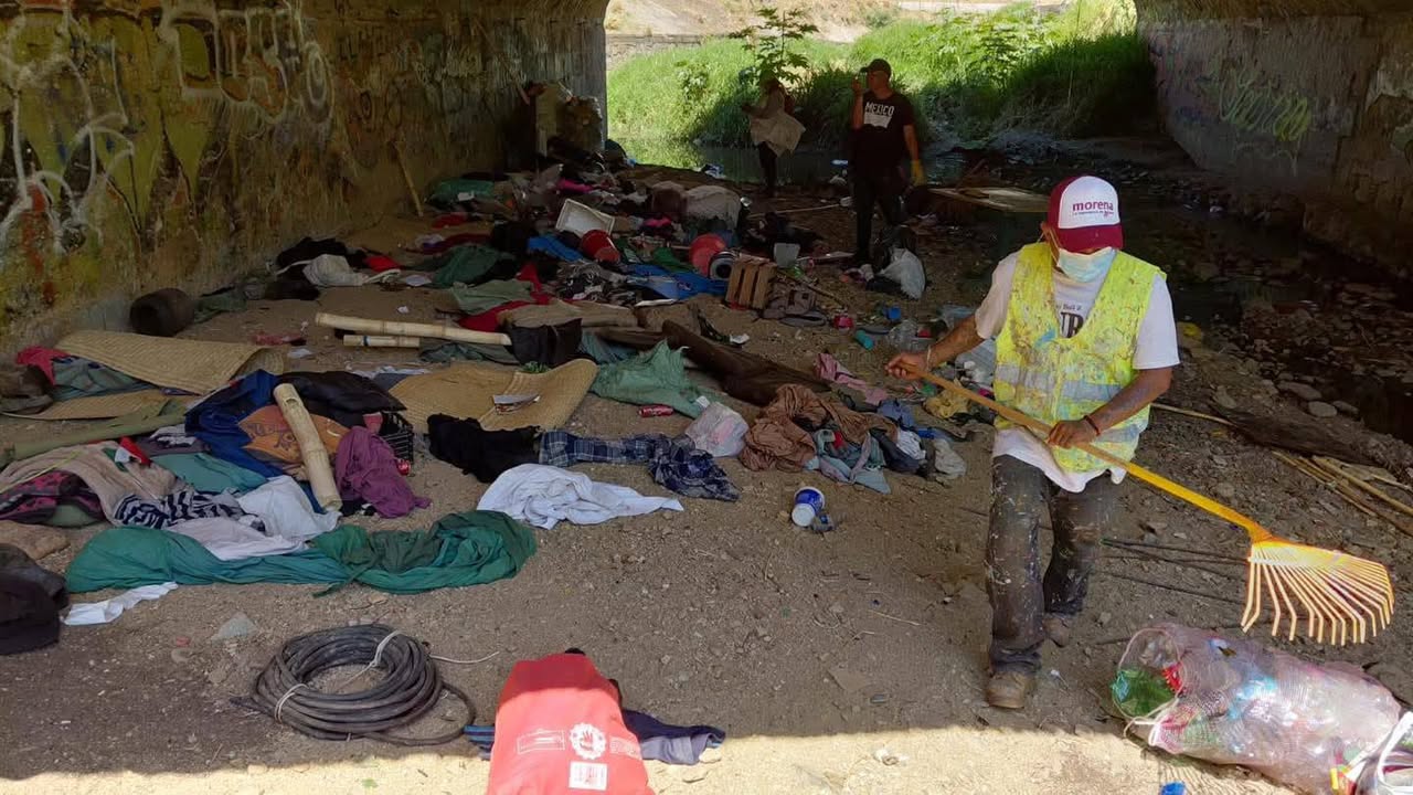 El Gobierno Municipal de Oaxaca de Juárez informa que en coordinación con personal de las Secretarías de Bienestar y Tequios Vecinales y de Seguridad Vecinal, se realizó el retiro de un campamento donde se acumulaban residuos, así como su recolección, con el objetivo de prevenir riesgos y evitar que, ante la temporada de lluvias, los desechos se dispersen en la zona.