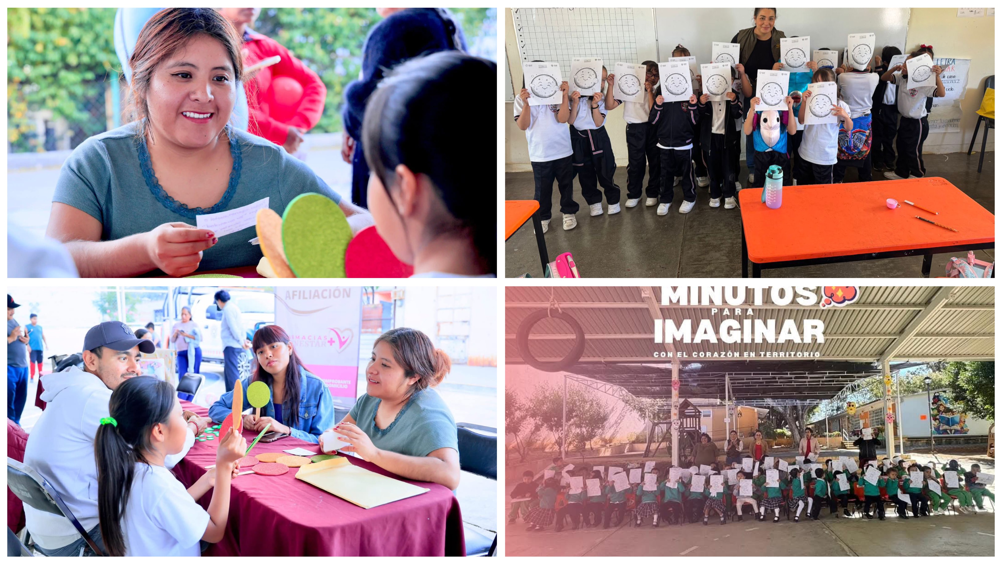 Mediante el programa “Minutos para Imaginar”, personal del DIF promueve el hábito de la lectura como una herramienta fundamental para el crecimiento saludable. Esta dinámica favorece el desarrollo del lenguaje y el vocabulario, impulsa el pensamiento crítico y la imaginación, y contribuye a mejorar la concentración y la memoria en la primera infancia.