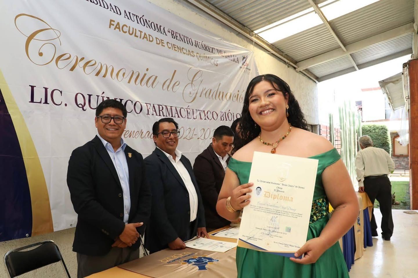 Entre palabras de aliento y deseos de éxito, se despidió a la Generación 2021-2026 de la Licenciatura en Químico Farmacéutico Biólogo de la Facultad de Ciencias Químicas de la Universidad Autónoma “Benito Juárez” de Oaxaca (FCQ UABJO), en una emotiva ceremonia que reunió a los 82 egresadas y egresados con docentes, autoridades educativas y familiares.