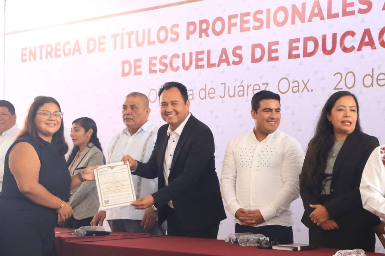 En trabajo coordinado con el magisterio oaxaqueño, el IEEPO realizó este lunes la entrega de 1342 títulos profesionales a docentes egresados de las once escuelas normales públicas del estado, desde la generación de 1998 hasta la del 2024.