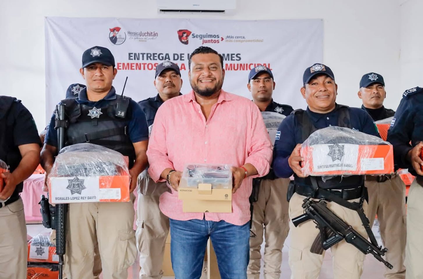 Esta mañana Miguel Sánchez Altamirano presidente municipal de Juchitán de Zaragoza, realizó la entrega de uniformes y equipo de comunicación a los elementos de la Policía Municipal.