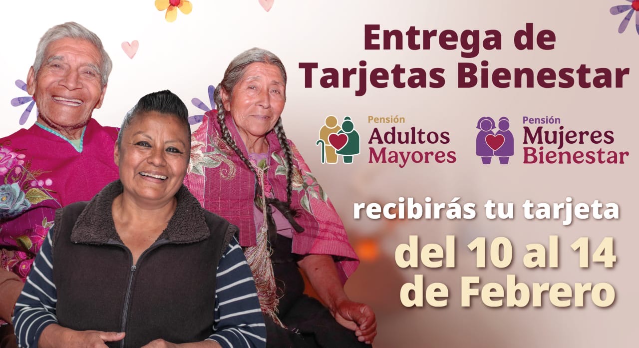 La secretaria de Bienestar, Ariadna Montiel Reyes, informó que, del 10 al 14 de febrero se realiza la entrega de la Tarjeta de Bienestar a quienes se registraron en diciembre a la Pensión Mujeres Bienestar o a la Pensión para el Bienestar de las Personas Adultas Mayores.