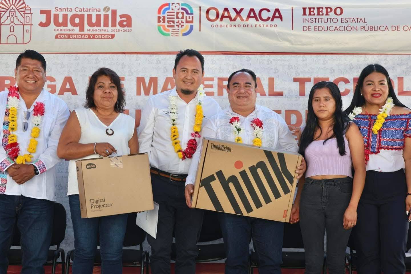 Siguiendo la instrucción del gobernador Salomón jara, el titular del Instituto Estatal de Educación Pública de OaxacaEmilio Montero Pérez acudió a Santa Catarina Juquila, para entregar equipamiento tecnológico a escuelas de nivel básico de este municipio, de San Juan Quiahije, Santiago Yaitepec y San Miguel Panixtlahuaca.