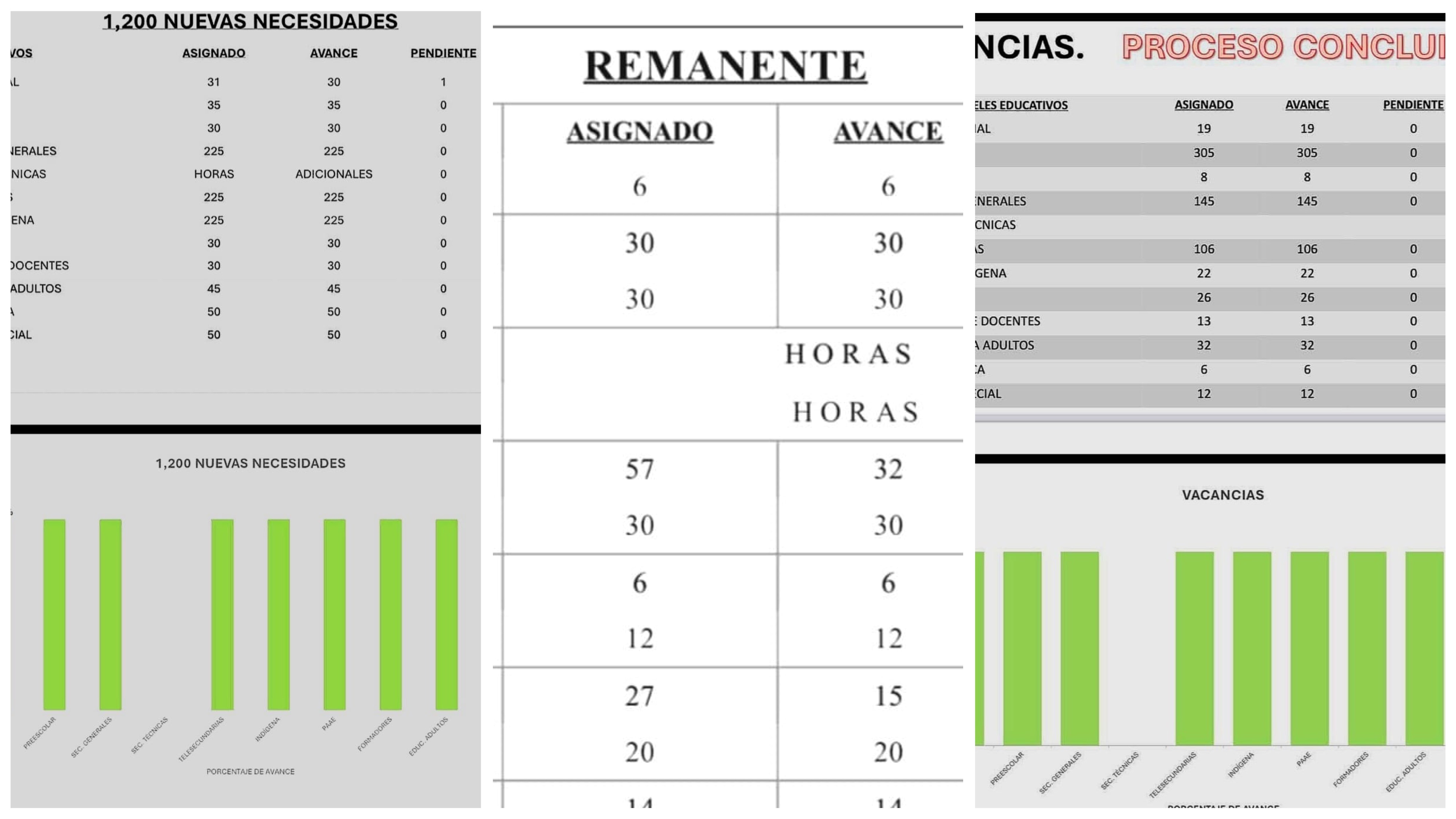 Teniendo por concluido al 100% los procesos de vacancia, incidencias y nuevas necesidades.