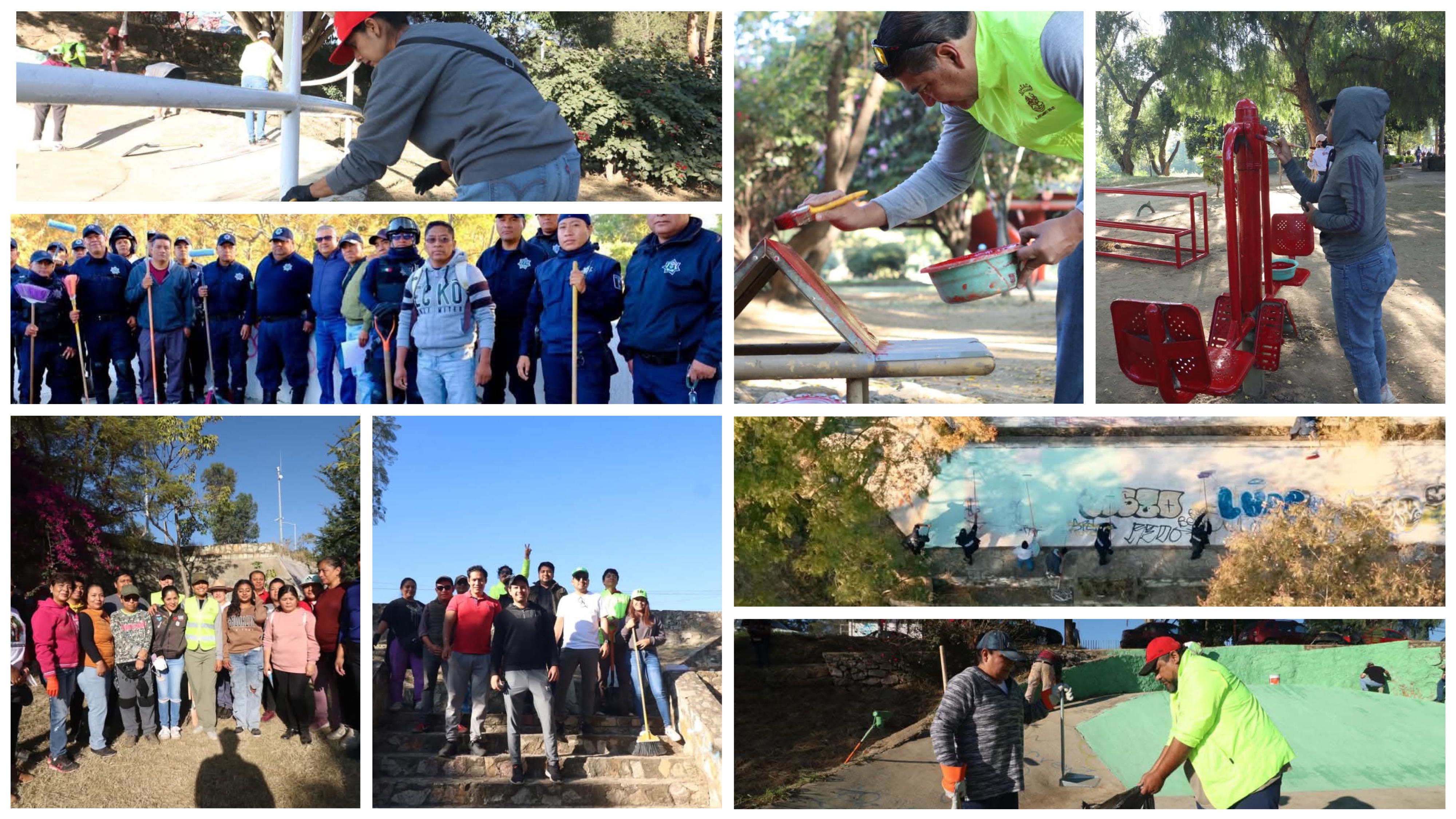 Durante la jornada, servidoras y servidores públicos de diversas áreas se coordinaron para realizar actividades de mantenimiento como limpieza de jardineras, levantamiento de basura, poda de pasto y pintura en canchas y espacios de uso comunitario. Estas acciones contribuyen a mejorar el entorno inmediato y a fortalecer el orden en una zona de alta movilidad para vecinas y vecinos.