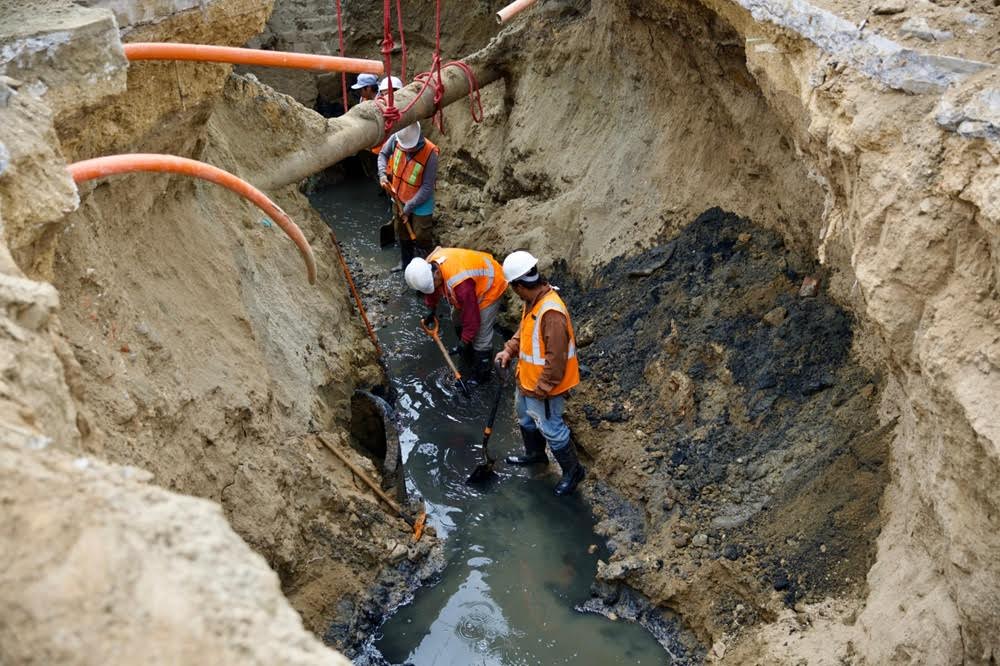 Lo anterior, derivado de una avería en una línea de conducción de 10 pulgadas registrada en la intersección de la calle Hidalgo y la avenida Manuel Gómez Morín.