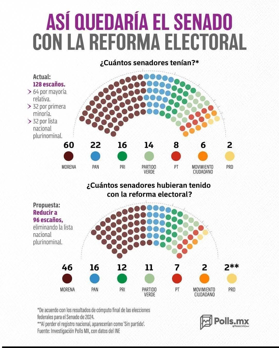 En pocas palabras: menos pluris = menos asientos para ajustar proporcionalidad, y el Senado quedaría más concentrado en las fuerzas grandes.