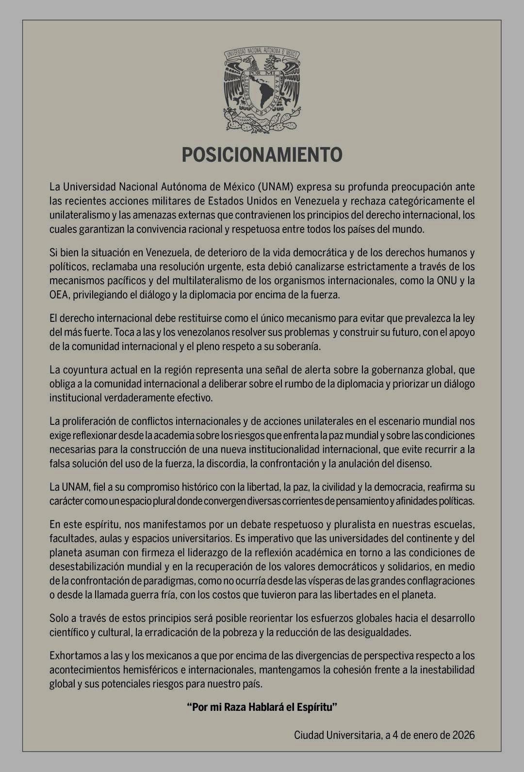 Posicionamiento de la UNAM sobre tema de Venezuela