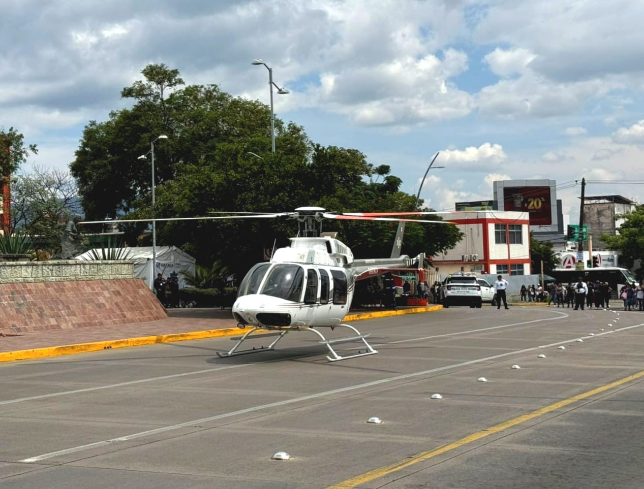 El masculino fue ingresado al nosocomio, luego de que el helicóptero Bell- 407, matrícula XC-XAO, proveniente de la comunidad Río Ciruelo, de este municipio de la Sierra Sur, aterrizó a un costado de la Fuente de las Ocho Regiones para recibir los servicios médicos.