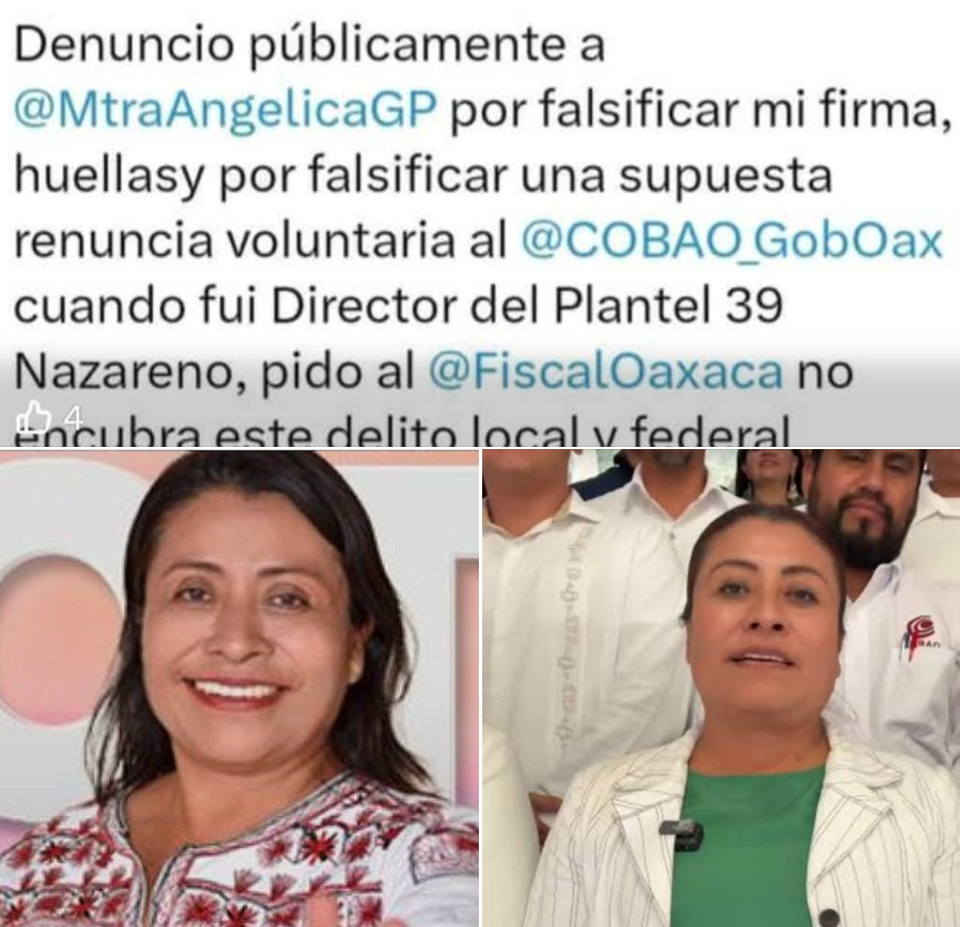La indignación crece en el ámbito educativo de Oaxaca tras la denuncia penal y pública en contra de Angélica García Pérez, directora general del Colegio de Bachilleres del Estado de Oaxaca (COBAO), a quien señalan por la presunta falsificación de firmas, además de una serie de irregularidades graves que incluyen corrupción, nepotismo y falta de pago a trabajadores jubilados.