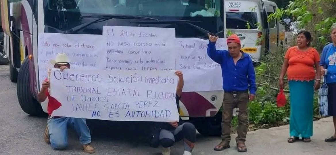 Habitantes de la zona mantienen cerrada la circulación para exigir al Tribunal Electoral que dé pronta resolución a su juicio de impugnación.