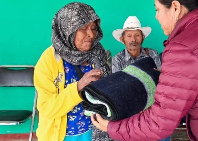 En la agencia de Chidoco, perteneciente a San Miguel Piedras, la legisladora acompañó al DIF Estatal Oaxaca en la entrega de apoyos destinados a brindar alegría y protección a las y los adultos mayores ante las bajas temperaturas.
