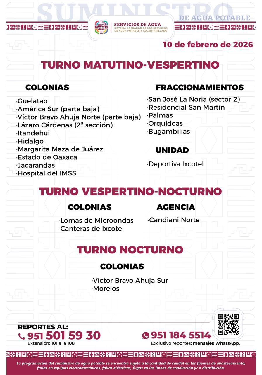 Lee más sobre Agenda del suministro de agua potable para este martes