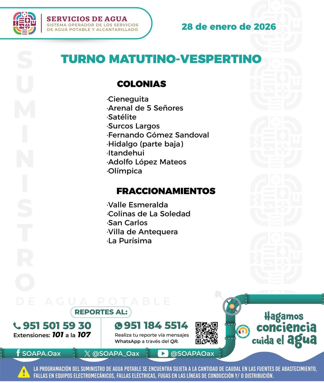 Agenda del suministro de agua potable para este miércoles ivet January 28 / 2026 Etiquetas Soapa (124 Lee más sobre Agenda del suministro de agua potable para este miércoles